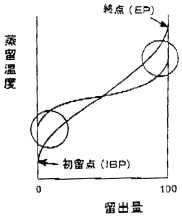 一方、合成潤滑基油の中には単一物質に近い構成の場合があり、この場合は蒸留曲線はより横ばいの曲線になります。 蒸留曲線は燃料油、ことにガソリンや軽油では気化性・着火性・燃焼特性などに、十分な意味を持ちますが、潤滑油の場合、前途したような特殊な製品を除くと複数の基油の採用や添加剤によって補うことができますので、あまり重要とされていませんでした。近年になって自動車の省燃費性が重要視され、エンジンオイルも低粘度化してきました。オイルの低粘度化は蒸発損失が増加するため、エンジンオイルの規格に蒸発損失量の上限(NOACK値等)が盛り込まれるようになりました。 このため、蒸発特性を見るために蒸留試験が行われることもあります。 |