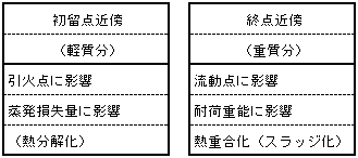 潤滑油の場合、取り出す目標粘度が明確ですから、全体のバランスを見ながら幅広い留分を取って粘度を調整するか、所定の粘度近傍の狭い留分を取るか、といったことが可能です。これは、蒸留曲線に反映しますが市販される潤滑製品は単一の基油だけでなく、幾種類かを調合しますので製品からは解らないことがあります。 一般には、ある程度の幅を持った取り方をしますが、製品によっては狭い留分の方がより好ましい場合があります。例えば真空ポンプ油や放電加工油などは、低粘度留分は揮発性が多く、揮発分を極力抑えるためには所定粘度の留分だけで構成される方が望ましい訳です。しかし、留分を狭めることはそれだけ得率が下がりますからコストアップに繋がりこの面では短所になります。 蒸留曲線での潤滑油に及ぼす影響についてまとめますと次のようになります。 |