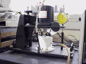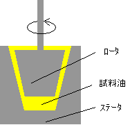 TBS法はASTM D 4683に規定され、日本では石油学会法JPI−5S―36―91に取り入れられました。 TBSとはTapered Bearing Simulatorを略した回転粘度計の一種です。主要部分は円錐形をしたロータとこれにぴったりはまるステータからなっており、テーパーは1/160で設計されています。ロータとステータの間が106/sというせん断速度になるよう、ロータとステータ間を極めてわずかで正確な隙間(3μm)に保ち、ロータを規定回転数(3000rpm)で回転させます。実際には、HTHS粘度が既知の標準油で、正確なせん断速度が得られるように隙間の調整を行ないます。この隙間に試験油を満たし、150℃に保ってロータを回転させたときの粘性抵抗から粘度を測定します。 |