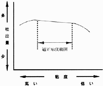 | 油圧ポンプの粘度による吐出性能は概略次のような傾向を示します。 |