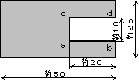 テンプレートは、右に示す形状・寸法の厚さ0.1±0.01mmの金属板で、幅約10mm、長さ約20mmの切込みのあるものです。 テンプレートをスライドガラス上に置き、テンプレートの切込みにグリースを満たし、カバーガラスではさみ、約100倍の顕微鏡を用いてきょう雑物粒子を10μm〜25μm、25μm〜75μm、75μm〜125μm、125μm以上の四つに分けて計数します。 規定の式により、グリース1cm3当りの10μm以上、25μm以上、75μm以上及び125μm以上の粒子数に算出し、試験結果とします。 |