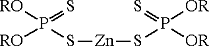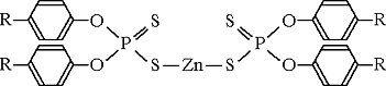 ![]() (R : 1級あるいは2級アルキル基) ジアルキルジチオりん酸亜鉛 ![]() (R : アルキル基) ジアリルジチオりん酸亜鉛 | |