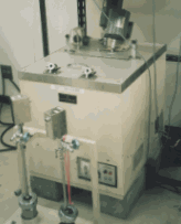 | (1) | 試料、水及び触媒コイルを入れた蓋付き試験容器を、圧力計を備えたボンベの中に入れます。ボンベの中に酸素を620kPa(6.3 kgf/cm2) まで圧入した後、150℃の恒温槽に入れます。 |
