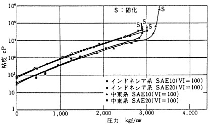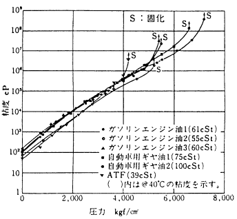 ![]() 図3 自動車用潤滑油の高圧粘度特性(@27℃) | |
