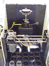 写真1は、自動CCS粘度計の内部写真です。中央の黒い部分にロータとステータがセットされています。ロータとステータを取り出した状態が写真2および写真3です。