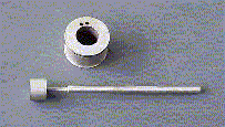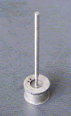 規定量のサンプル油をセル内(ステータ)(内径19mm)に入れ、ロータ(外径17mm、長さ20mm写真4)を差し込んだ後にロータ軸(直径3.18mm)に糸を巻き付けます。