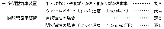 | (注)*1: | 3600rpm または周速 20m/s 以上のものは条件により、1グレード上または下のギヤー油を使用することがある |
