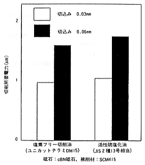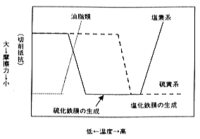 ID-S81 非塩素系切削油について 今日使用されている切削油剤には、塩素系添加剤が広く使用されてきた。これは塩素系添加剤が各種の切削条件で優れた効果を示すためである。塩素系添加剤のほかに、油脂系、りん系、硫黄系などの添加剤があるが、広い使用条件で切削抵抗を下げる効果は図1のモデル図に示すように塩素系添加剤にはかなわない。 ![]() 図1 切削油添加剤の効果の概念図 しかしながら、塩素系添加剤の一つである塩素化パラフィンには発ガン性があるとの報告がなされたこと、焼却処理時に有害なダイオキシンを生成する可能性が指摘されたこと、さらには使用時にダイオキシンが生成している可能性が示されたことなどから、近年塩素系添加剤を含まない非塩素系切削剤への転換が進められている。 非塩素系切削剤としては、各種の検討の結果、硫黄系添加剤とCaスルホネートを併用した切削剤が開発されている3)4)。硫黄系添加剤のみでは塩素系添加剤より切削性能が劣るが、図2に示すようにCaスルホネートを併用することにより塩素系添加剤と同等以上の性能に改善することができる。切削面の硫黄の分布を観察した結果から、硫黄系添加剤とCaスルホネートの併用処方では強固な硫化膜が生成していることが明らかになり、Caスルホネートが皮膜の生成に大きな役割を果たしていることが分かっている。 ![]() 図2 ボールねじ研削における塩素フリー油の切削性能 「出典」 |