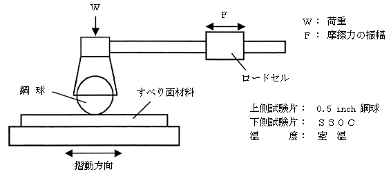 ID-247 摺動面油の性能評価 摺動面油には優れた摺動特性、水溶性切削油分離性が必要です。さらに作動油として使われることもあり、この際には酸化安定性、熱安定性、耐摩耗性が必要です。粘度はISOVG32,68,220が選ばれ、一番多く使われるのはISOVG68の製品です。 摺動特性はバウデン試験機を用いて測定する摩擦係数や真円度測定器による真円度によって判定する事ができます。 図1にバウデン試験機の概略図を示します。 ![]() 図1 バウデン試験機の概略図 VG68の摺動面油のバウデン試験結果は次のように表され、摺動面油はこの値が小さくなるようにデザインされています。
