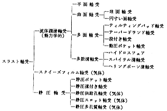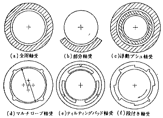 ID-S32 すべり軸受はどのようなところに使われているか すべり軸受はエンジン用軸受に代表されているが、他にはどのような箇所に、どのような形状で、どのように使われているのでしょう。 すべり軸受はエンジン用軸受として最適であり、すべり軸受の代表例であることは周知でしょう。ところが、よくよく見渡してみるとその使い方は千差万別で、エンジン用軸受はその一例に過ぎない、ということも事実です。以下にすべり軸受の適用例、その種類を構造と材質面から、最後に軸受の選択について述べることとします。 ●すべり軸受の適用例 すべり軸受が使われている主なものを、大きさの順に並べたのが図1です1)。軸受の大きさでは、この中で最も大きな水車発電機のスラスト軸受の面積が10,000cm2、逆に最も小さな腕時計軸受は0.001cm2であり、その差は実に1億倍もあるのに驚かされます。この他にも種々の適用例があり2)、全ての機械、機関において多くのすべり軸受が使われています。 ![]() 図1 すべり軸受の大きさ ●すべり軸受の種類 すべり軸受は、荷重方向により表1、表2に示すように、軸芯の方向に直角に荷重がかかるジャーナル軸受と、軸芯の方向に、平行に荷重がかかるスラスト軸受に大別されます3)。荷重指示機構から分類すると、流体潤滑軸受(動圧軸受)、スクイーズフィルム軸受、静圧軸受に分かれます。主要な流体潤滑ジャーナル軸受の構造を図2に示しました4)。(a)は最も一般的な全周軸受で、動荷重の場合に適しており、これに対して(b)の部分軸受は、静荷重の場合に適しています。の浮動ブシュ軸受は、高回転用に使われます。(d)(e)(f)の軸受円周を数等分した多面軸受は、軸芯を振れさせないようにしたもので、すきまを最小限にしても、焼付かせない工夫がしてあります。 ![]() ![]() ![]() 図2 流体潤滑ジャーナル軸受 次に軸受材料について述べます。軸受材料の種類は、表3の潤滑機構別適用例に示すように、使われる潤滑状態により大きく異なり5)、その状態によって軸受の負荷能力も大きく変わります。 ![]() 潤滑状態を簡単に説明します。